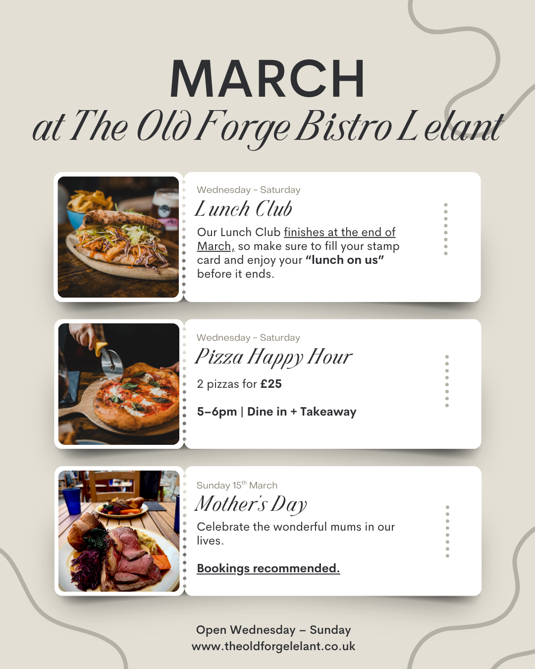Spring is just around the corner and we have a lovely month ahead at The Old Forge Bistro in Lelant.